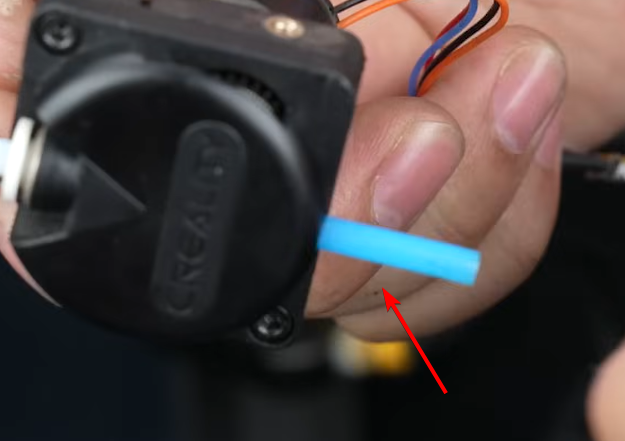Remove the PTFE and extruder to hotend, and re-install extruder.