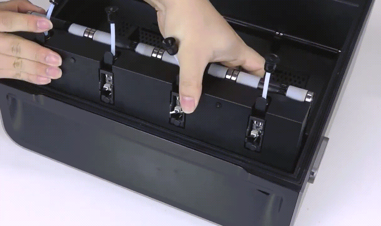 - 21. Re-Install the filament intlet, place the filament tube properly, and plug in the wires