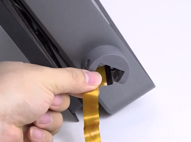 remove the old screen. Take the replacement screen, and carefully guide the flat cable through the designated cable channel, and position it correctly. Once aligned, secure the screen to the mount by fastening it with the same screw.