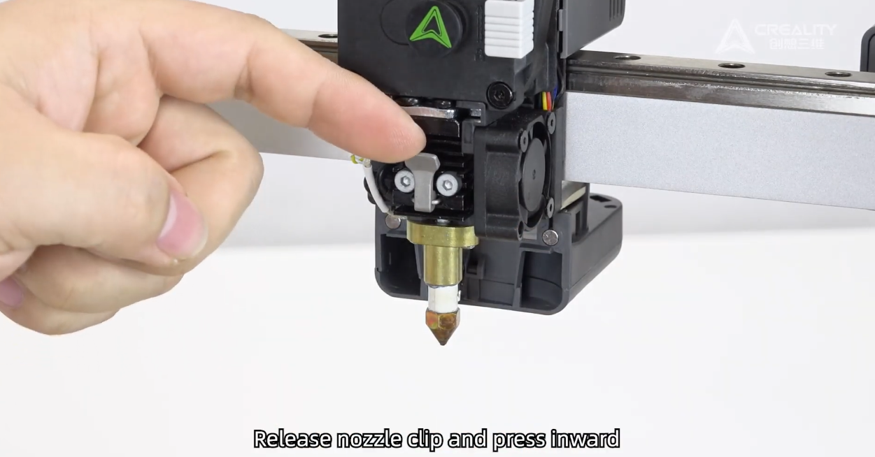 Step 5: Release the nozzle clip by pushing downwards and out to release the clip.